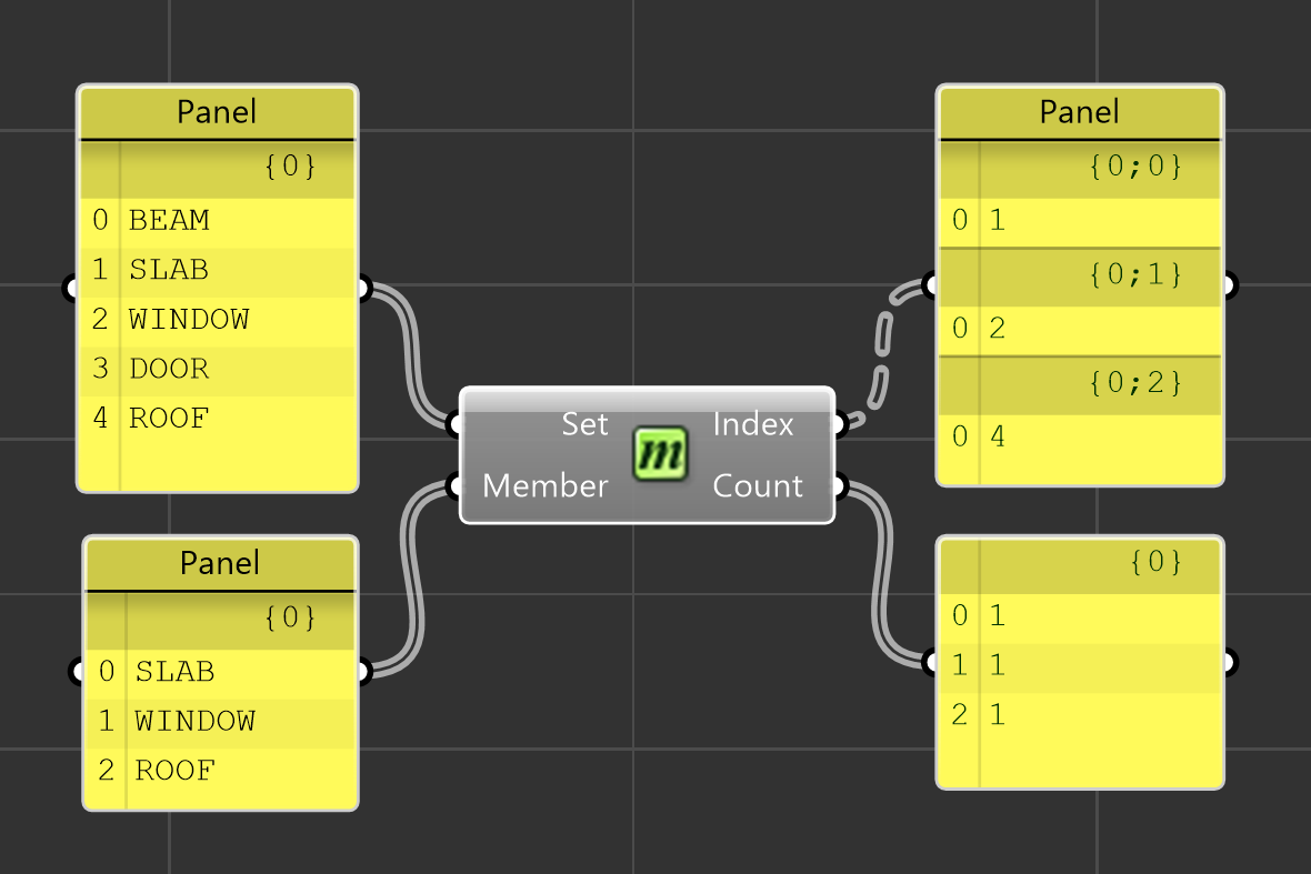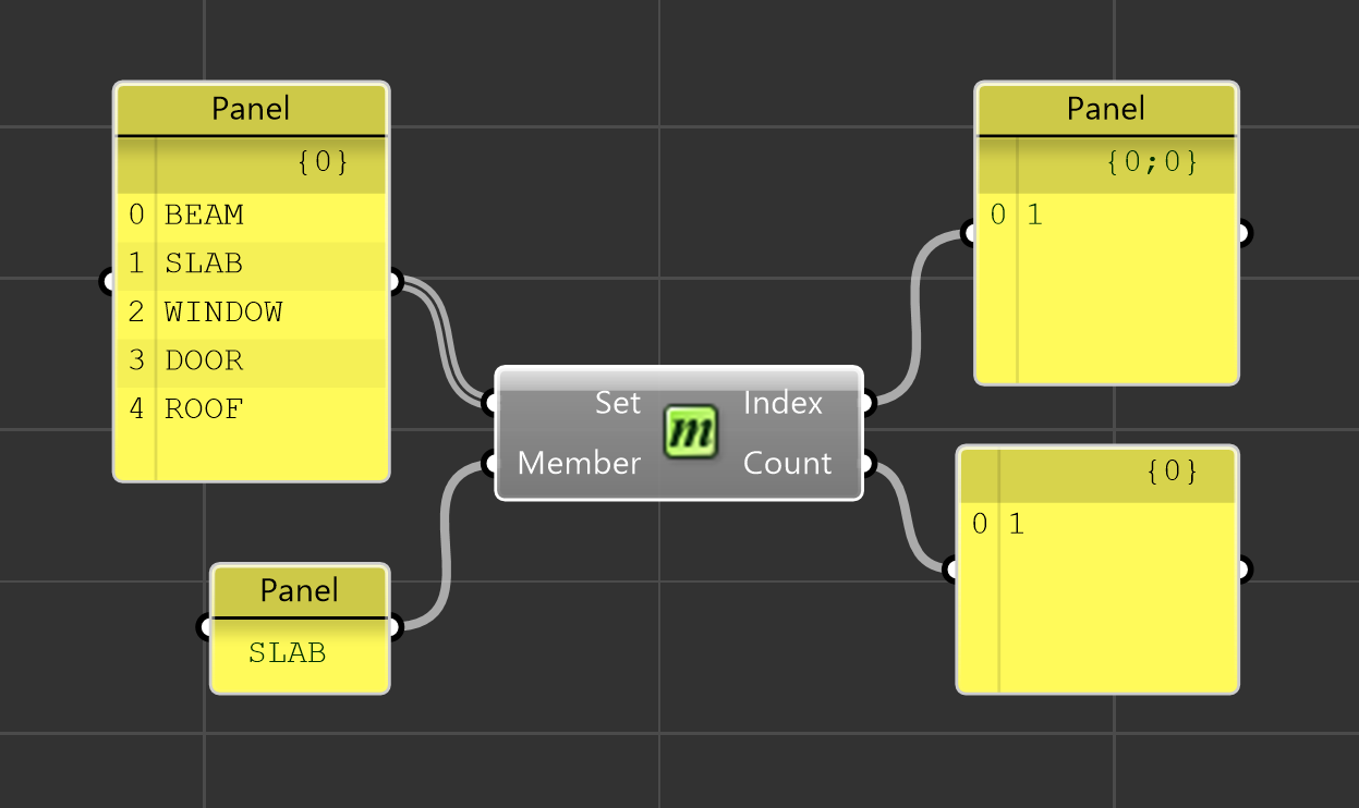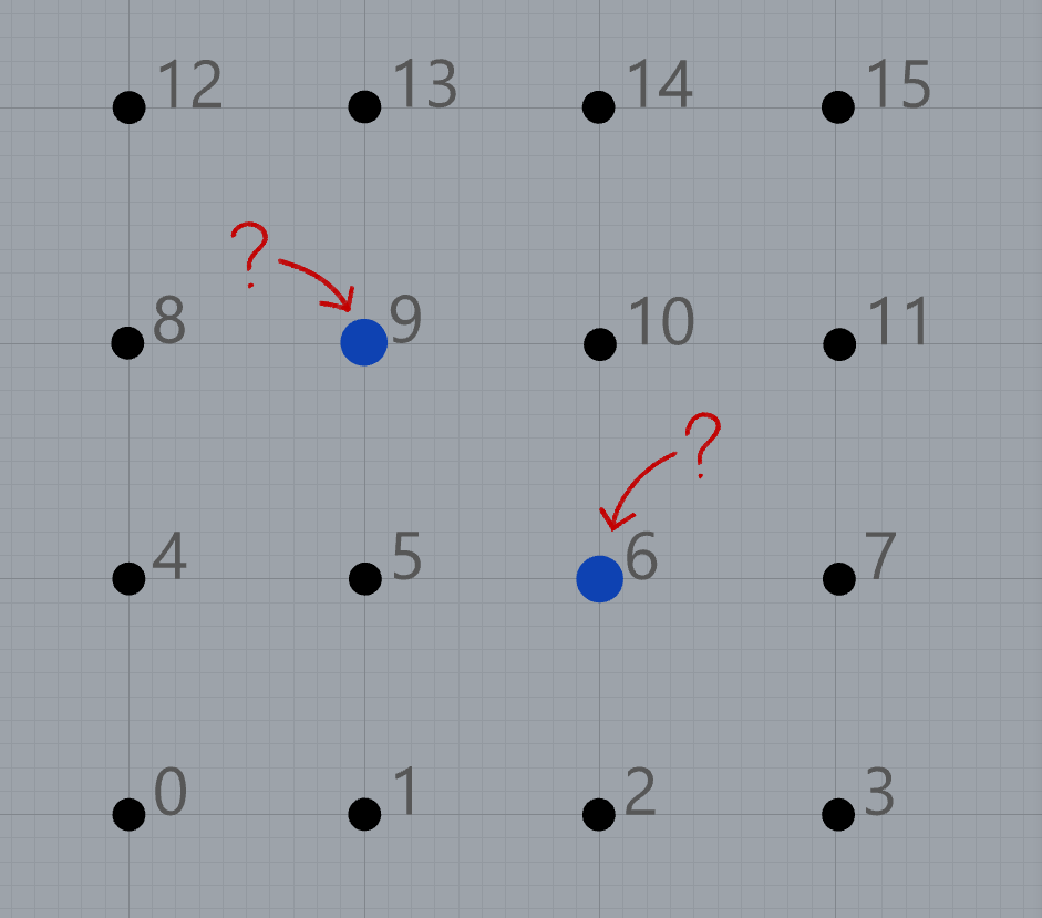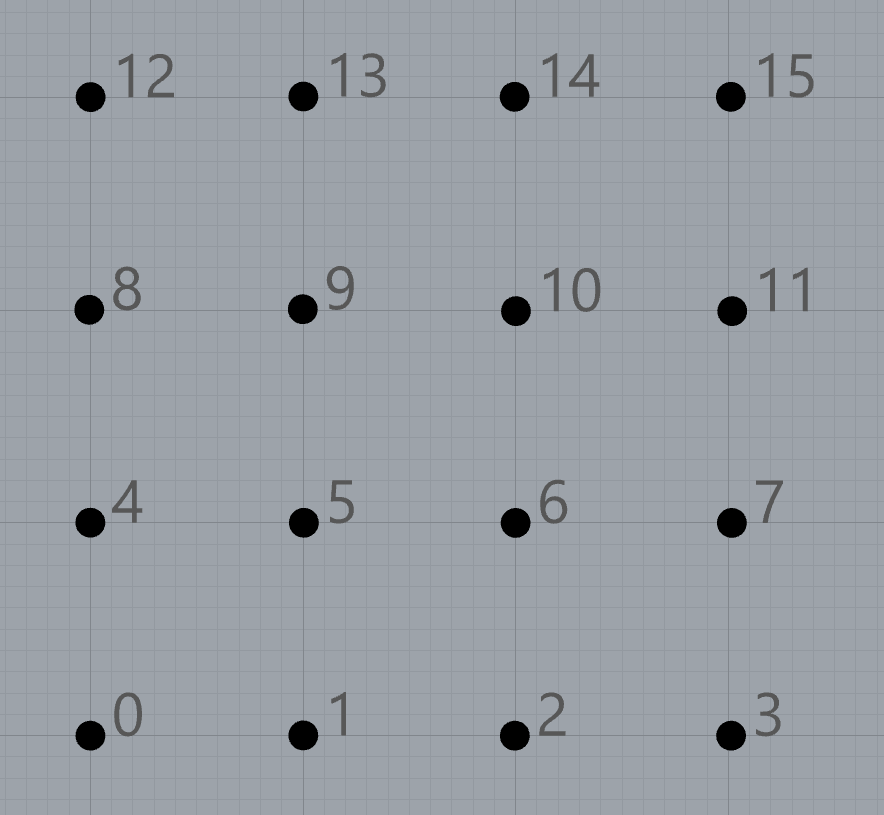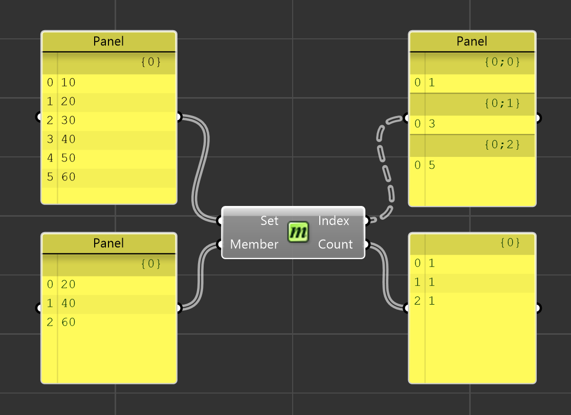 При помощи Member Index можно искать индексы элементов в некоторых геометрических объектах, таких как точки. Представьте себе некоторую ситуацию, в которой, предположим есть некоторый список точек (не важно на одной они плоскости, или в пространстве):